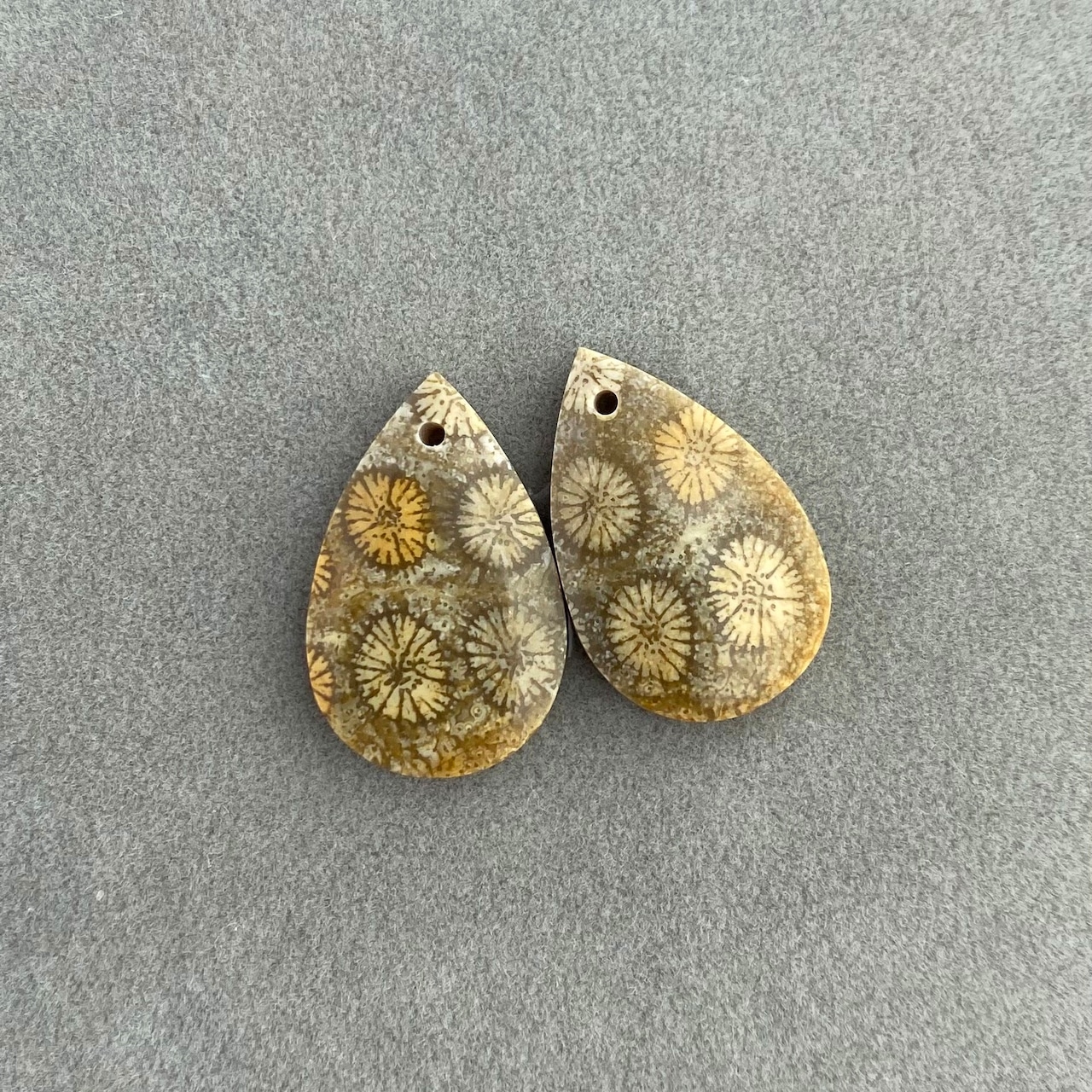 フォッシルコーラルとは、古代のサンゴが長い年月をかけて化石化し、石英などの鉱物に置き換わったものです。可愛らしい独特の花模様があり、アクセサリーの素材として人気があります✨