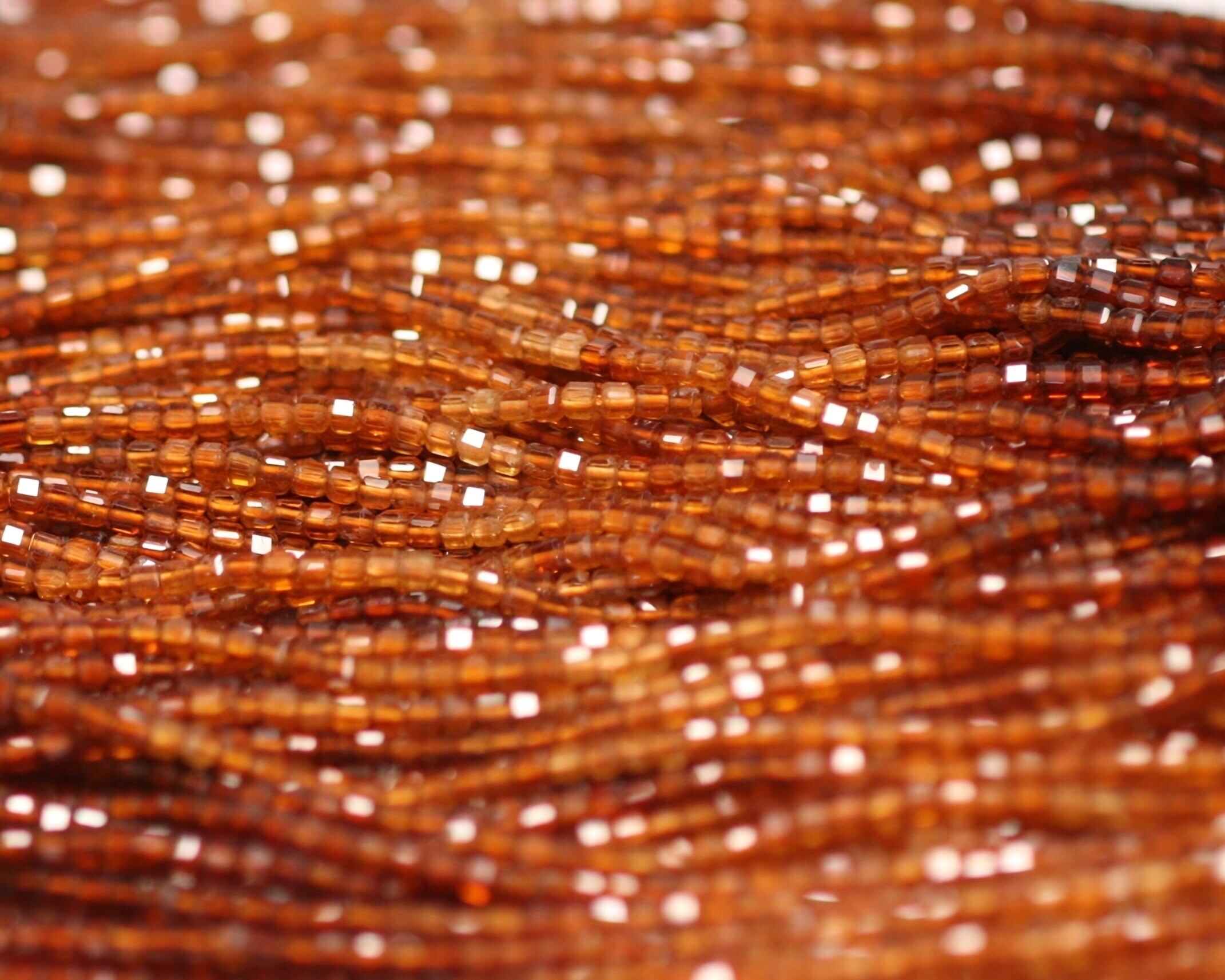 発色と透明感が美しい天然石、オレンジガーネットのキューブカットビーズです。こちらは、グラデーションカラーが魅力の一品。濃密な橙色から柔らかなライトオレンジへと変化する色彩が絶妙で、デザインに豊かな表情と奥行きを与えます。